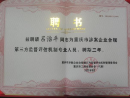 吕治平,毕业于西南政法大学,重庆智豪律师事务所管委会副主任,党支部书记,重庆市法学会律师法研究会首届理事,重庆市渝北区律师行业党委委员,重庆市律师协会渝北区律工委刑事专业委员会主任,中共渝北区第十五次党代表,律师制度恢复重建40周年特别贡献奖(重庆市)获得者,先后被评为全市律师行业优秀共产党员,全国律师行业优秀党员律师,2024年度重庆市最佳刑事辩护律师等,系首批获聘重庆市涉案企业合规第三方监督评估机制专业人员。
