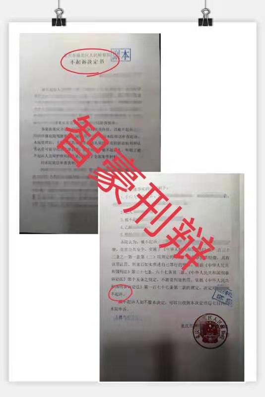【不起诉案例】某危险驾驶案,智豪律师接受委托后及时会见了解案情,公安侦查阶段成功取保。审查起诉阶段,多次与检察官沟通交换意见,提出犯罪嫌疑人犯罪情节轻微,不需要判处刑罚的辩护意见,被检察机关采纳。本周,检察机关做出《不起诉决定书》。不起诉,即案件不交付法院审判,其法律效果相当于一个无罪判决!