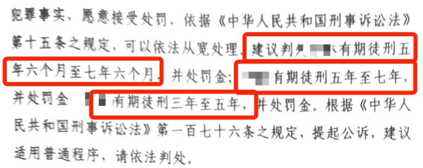 检察院提出的量刑建议分别是:A 有期徒刑5年6个月—7年6个月;B有期徒刑5年—7年;C有期徒刑3年—5年。