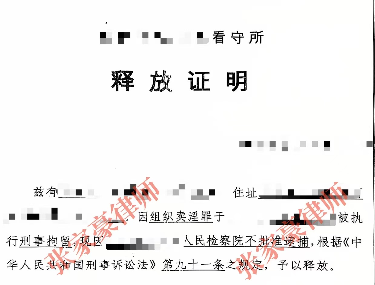 - · 张某涉嫌组织卖淫罪 智豪辩护一周内成功取保无罪释放