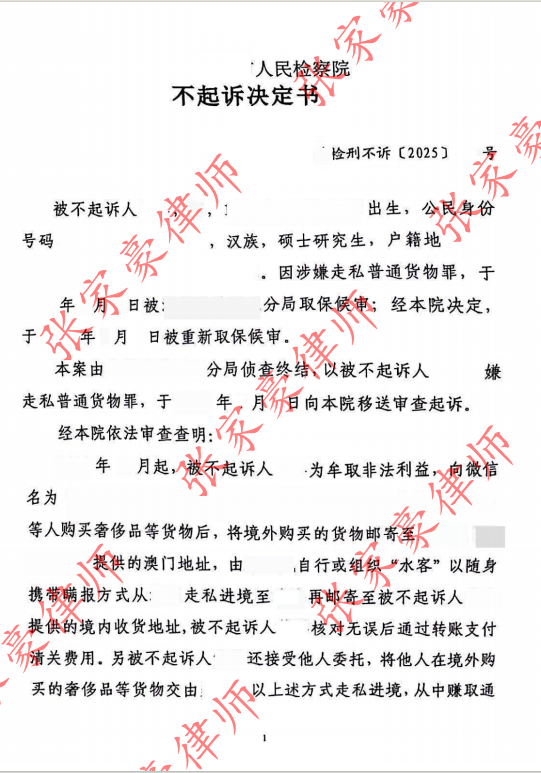 案情简介:当事人从事“代购”生意 ,将境外购买的奢侈品交由“水客”以瞒报方式从澳门走私入境 ,偷逃税额近30万元。经过张家豪律师辩护,争取到不起诉,不留下案底。